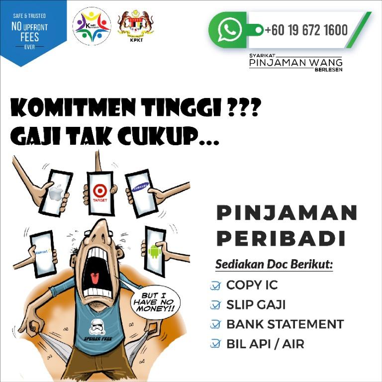 Terdapat 2 institusi yang anda mungkin dapat membuat pinjaman peribadi: Elegant aim sdn bhd ll pinjaman peribadi ll dokumen ringkas ll proses mudah ll tunai segera jika pinjaman diluluskan ll cik.umi 0167575574. 1 148 просмотров 1,1 тыс. Kami adalah syarikat pemberi pinjaman wang berlesen yang berlesen & berdaftar dengan kpkt ( kementerian perumahan dan kerajaan tempatan ) di bawah akta pinjaman wang 1951. Pemberi pinjaman wang berlesen (ppwb).