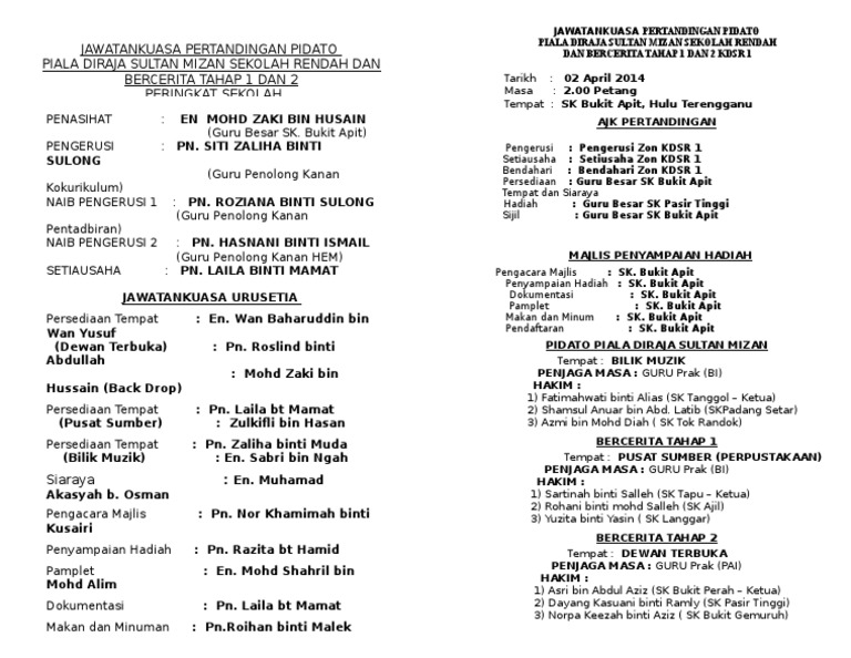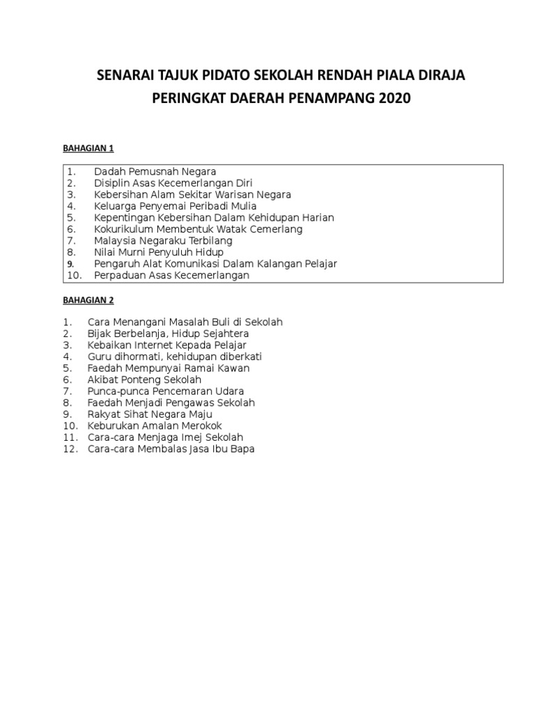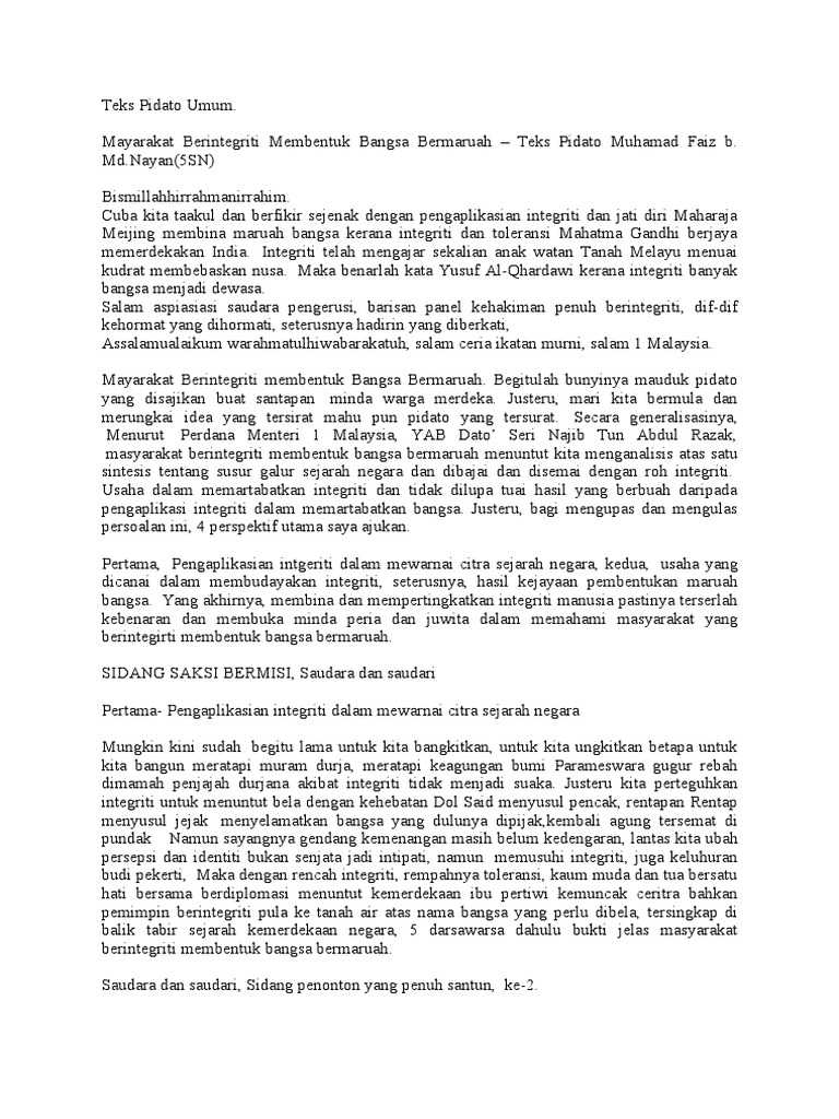 8/12/2019 skrip pidato bahasa melayu sekolah rendah. Tengah, cileungsi pada jum'at, 10 dzul hijjah 1438 h 01 september 2017 m. Teks pidato terbaik malaysia piala diraja. Nama sekolah:sk kampung balan, dalat. Memperbanyak takbir di hari hari terbaik disampaikan oleh ustadz abu yahya badrusalam, lc. Modul panduan bahas (rm150.00) & modul panduan pidato (rm100.00) telah mula dijual. Keputusan pertandingan pidato piala diraja peringkat kebangsaan 2015 yang diadakan di ipg kampus bahasa melayu kuala lumpur. Teks pidato diraja kesetian kepada raja dan negara. Contoh pidato masyarakat sejahtera hidup bahagia. Borang pemarkahan pertandingan pidato piala diraja. Teks pidato bahasa melayu sekolah menengah on. Keputusan pertandingan pidato piala diraja peringkat kebangsaan 2015 yang diadakan di ipg kampus bahasa melayu, kuala lumpur.sekolah rendah :johan : 13 pidato piala kpm sekolah rendah kertas konsep kertas konsep pidato piala diraja sekolah rendah kementerian pendidikan malaysia 1.0 pengenalan pidato ialah satu cabang seni penyampaian mesej secara lisan yang mengandungi idea, menaakul konsep, menghuraikan dan merumuskannya secara berkesan.