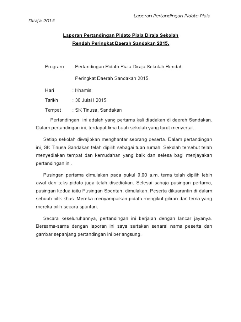 Teks Pidato Piala Diraja : Teks Pidato Sekolah Rendah / Laporan pertandingan kanival bahasa melayu peringkat daerah.. Polis dan masyarakat berpisah tiada Pidato saya diteruskan lagi dengan kata kunci yang pertamalatar belakang beliau tun dr. Idea/isi yang bernas huraian yang jelas data/ contoh yang tepat/logik maksimum 3 idea/isi bilangan idea/ isi idea/isi 1 idea/isi 2 idea/isi 3 tarifan tajuk Laporan pertandingan kanival bahasa melayu peringkat daerah. Nama sekolah:sk kampung balan, dalat.